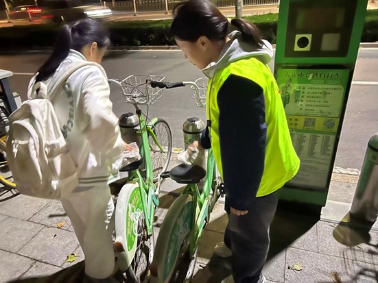 10月25日,人工智能学院星光志愿服务队,在学校北门附近开展 “志愿擦靓单车,爱心传递文明” 志愿服务活动,用双手擦亮出行工具,用行动传递文明力量。