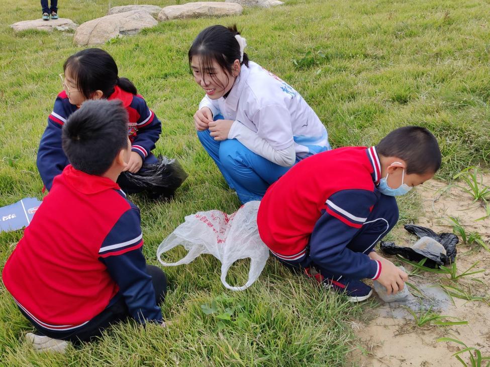 活动开始,建桥小学的级部主任宣读本次活动实施方案,介绍主题教育活动具体内容,建桥小学校长为四年级全体少先队员进行授旗。青年志愿者们为孩子们讲解垃圾分类的方法和保护环境的重要性,带领孩子们对弥河河岸的环境进行了维护。志愿者们做好分工,与孩子们一起处理了遗留的白色垃圾,圆满完成了此次的任务。