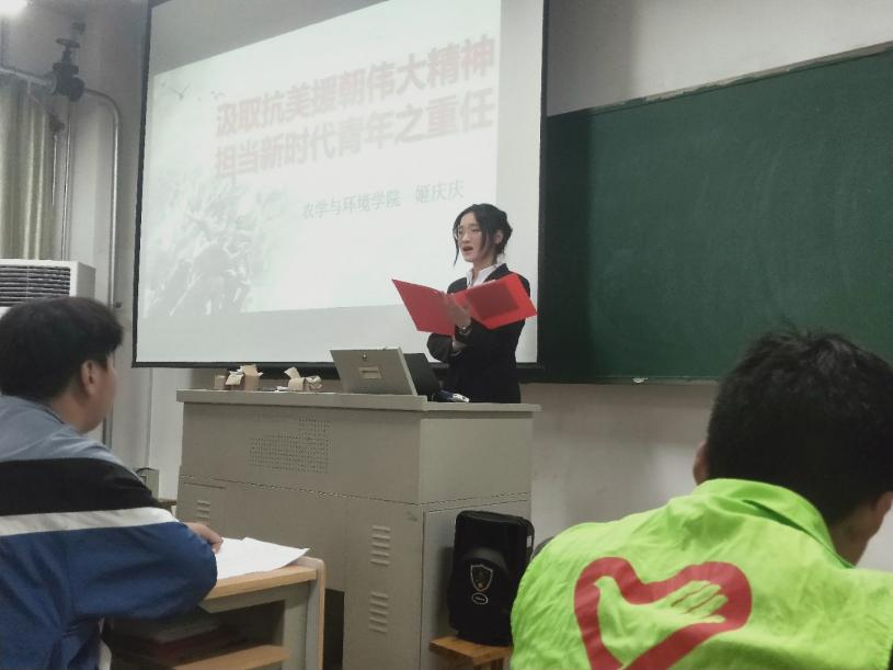 为纪念抗美援朝71周年,弘扬抗美援朝精神,贯彻习近平总书记在纪念中国人民志愿军抗美援朝出国作战大会上提出的四个自信,2021年10月29日下午,我校青年志愿者服务队于建筑与设计学院106教室成功举办纪念“抗美援朝”71周年主题演讲比赛。