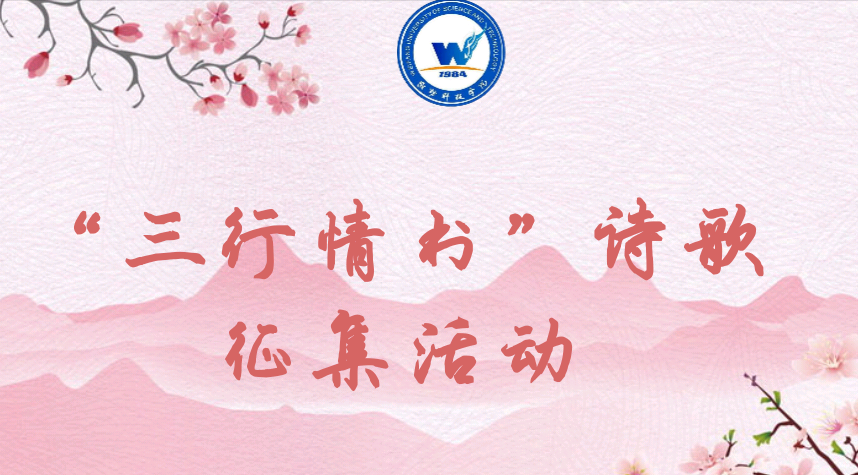 为了丰富同学们的课余文化生活,提高大学生的文学修养水平,鼓励我校学生在文学方面,尤其是在诗歌方面的创作热情,活跃校园文化氛围,提高学生的写作素养,锻炼学生自主创新的能力,从中发现自我的闪光点。近日,我校校学生会特举办“三行情书”诗歌线上征集活动。