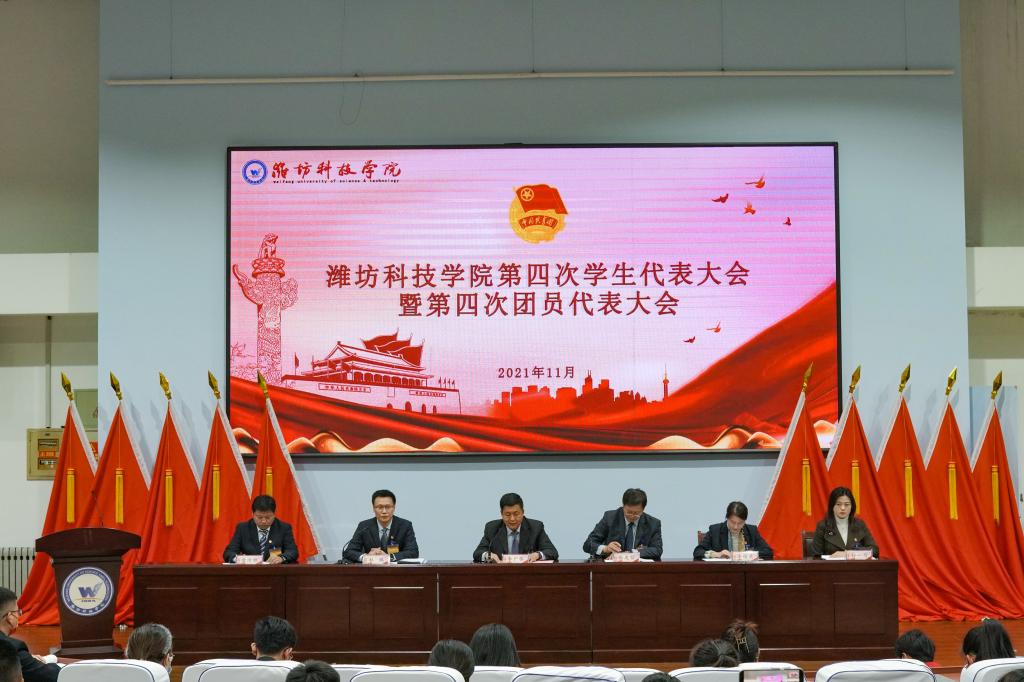 为深入学习贯彻党的十九大精神和习近平新时代中国特色社会主义思想,全面落实全国高校思想政治工作会议精神和全国学联二十七大工作部署,按照全国学联二十七大工作部署和《关于推动高校学生会(研究生会)深化改革的若干意见》,11月20日,潍坊科技学院第四次学生代表大会暨第四次团员大会在经管环形报告厅隆重召开。校党委委员、副校长李广伟出席大会开幕式,学工处、团委全体人员,各二级学院党支部副书记、团总支书记以及部分青年教师代表、学生代表共计350人参加会议。山东大学、中国石油大学(华东)、厦门大学、吉林大学等多所省内外高校发来贺信,祝大会取得圆满成功。
