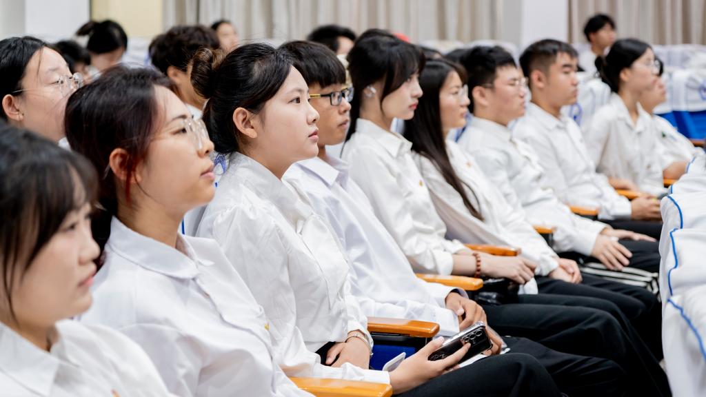 上午大会直播伊始,现场气氛庄严肃穆。团员青年们身着整齐服装,坐姿端正,全神贯注地注视着屏幕。当礼炮轰鸣、国歌奏响,大家自发起身肃立,神情庄重地唱响国歌;在重要讲话环节,同学们认真聆听要点,深刻回顾80年前那段烽火连天、救亡图存的壮烈历史,深切感悟中国人民在抗日战争中展现出的“天下兴亡、匹夫有责”的爱国情怀,“视死如归、宁死不屈”的民族气节,“不畏强暴、血战到底”的英雄气概以及“百折不挠、坚韧不拔”的必胜信念。受阅部队阵列严整、步伐铿锵,国产现役主战装备依次亮相,战机翱翔长空划出和平航迹,震撼的画面让同学们的自豪感与使命感油然而生。