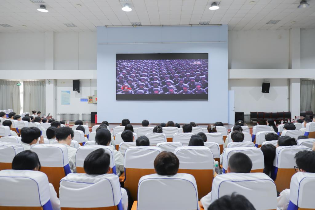 为深切缅怀革命先烈,弘扬伟大抗战精神,进一步激发广大学子的爱国热情与时代责任感,在纪念中国人民抗日战争暨世界反法西斯战争胜利80周年的重要时刻,9月3日,潍坊科技学院团委统筹部署、精心策划,各学院团总支积极响应,组织师生在经济管理学院环形报告厅同步收看纪念大会及阅兵式直播,共同见证历史荣光,感悟精神伟力。