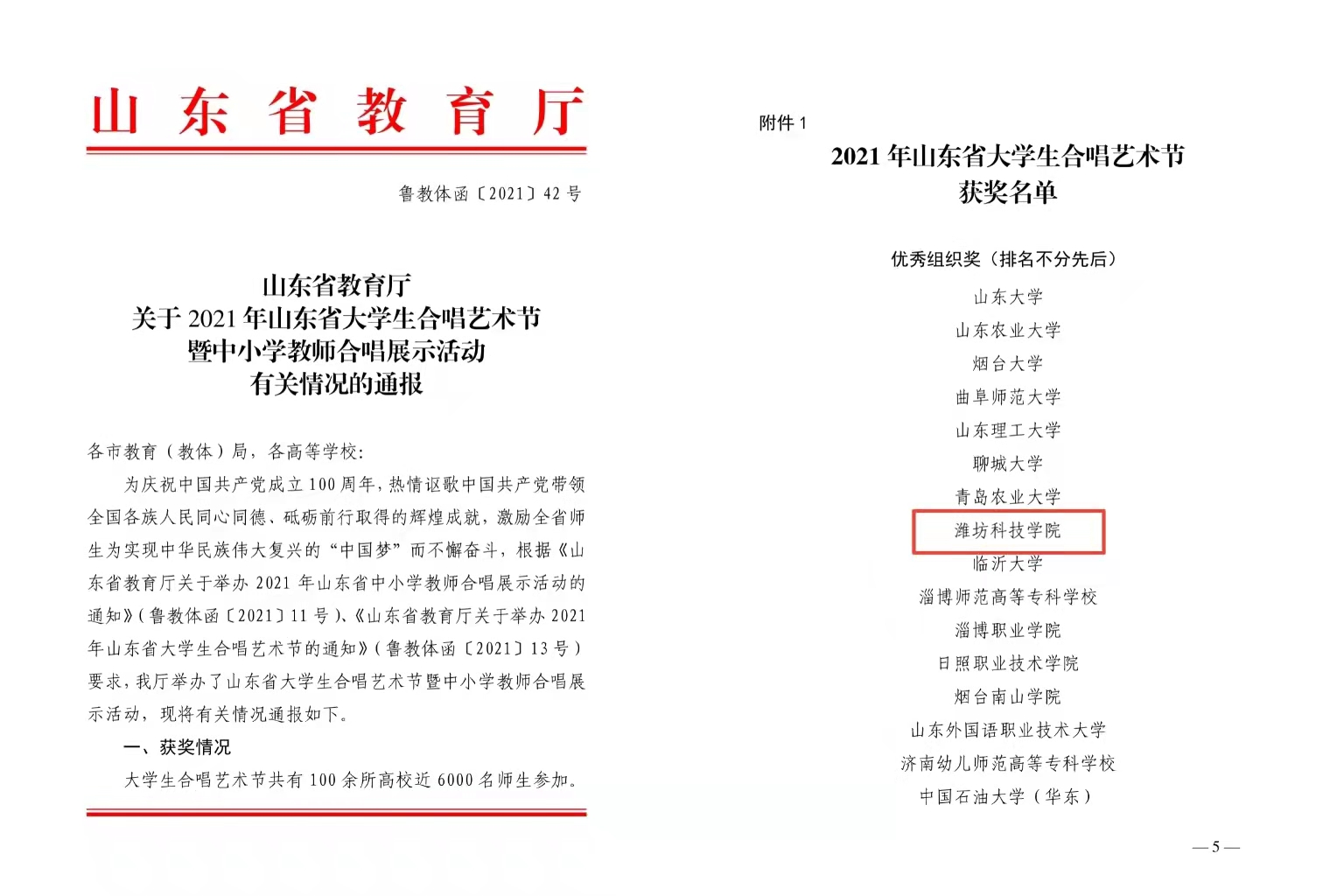 | 喜报!我校倾音混声合唱团荣获山东省2021年大学生合唱艺术节一等奖 |