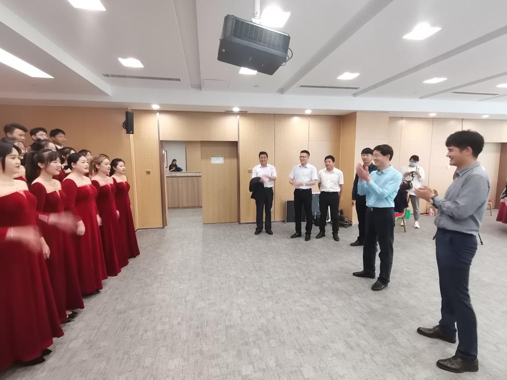 近日,山东省教育厅发布《关于2021年山东省大学生合唱艺术节暨中小学教师合唱展示活动有关情况的通报》,对今年六月份举办的山东省大学生合唱艺术节暨中小学教师合唱展示活动的比赛结果进行公示,我校三支参赛队伍中,我校教师王菲、冀哲指导的倾音混声合唱团以全省总分第四名的成绩斩获甲组一等奖,胡静、孙艳艳指导的女声合唱团荣获二等奖,李雷、李晓雪指导的女声小合唱获得三等奖,学校获“优秀组织奖”,学校党委委员、副校长李广伟代表学校上台领奖。