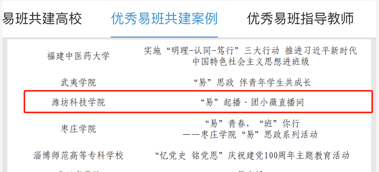 近日,由教育部易班发展中心开展的“2021年度全国易班共建高校优秀工作案例”遴选结果公示,我校获评“全国优秀易班共建高校”荣誉称号,“‘易’起播·团小薇直播间”被评为“全国优秀易班共建案例”。