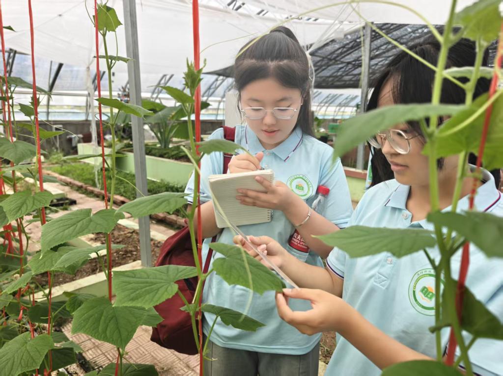 团队特别关注果实发育状况,运用游标卡尺精确测量果实纵径、横径,并记录果形指数、单果重等品质参数。队员通过建立作物生长模型,分析数据差异成因,探讨光照、水肥对植株的影响,为农户提供科学种植建议。
