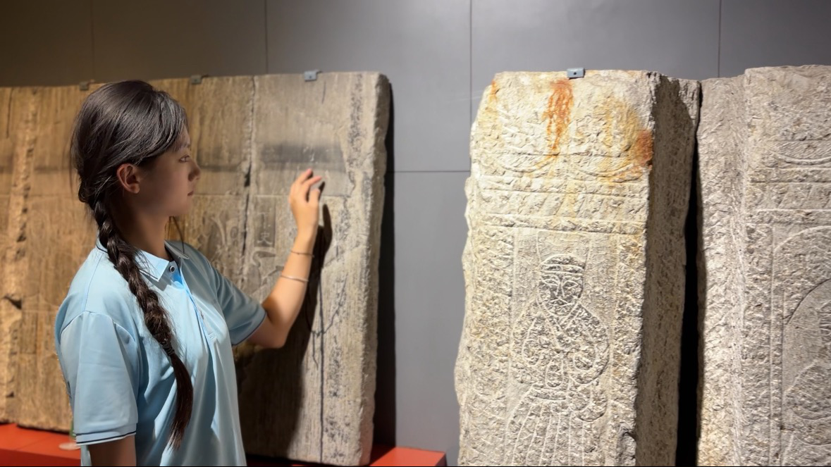 在石刻文物区域,展厅灯光柔和洒落,照亮斑驳石刻画像。一名队员伸出手,轻触石刻纹理,借触觉感知历史余温。这些经岁月侵蚀的石刻,作为潍坊历史文化载体,以静态呈现传递往昔信息,为队员呈现地域历史片段。