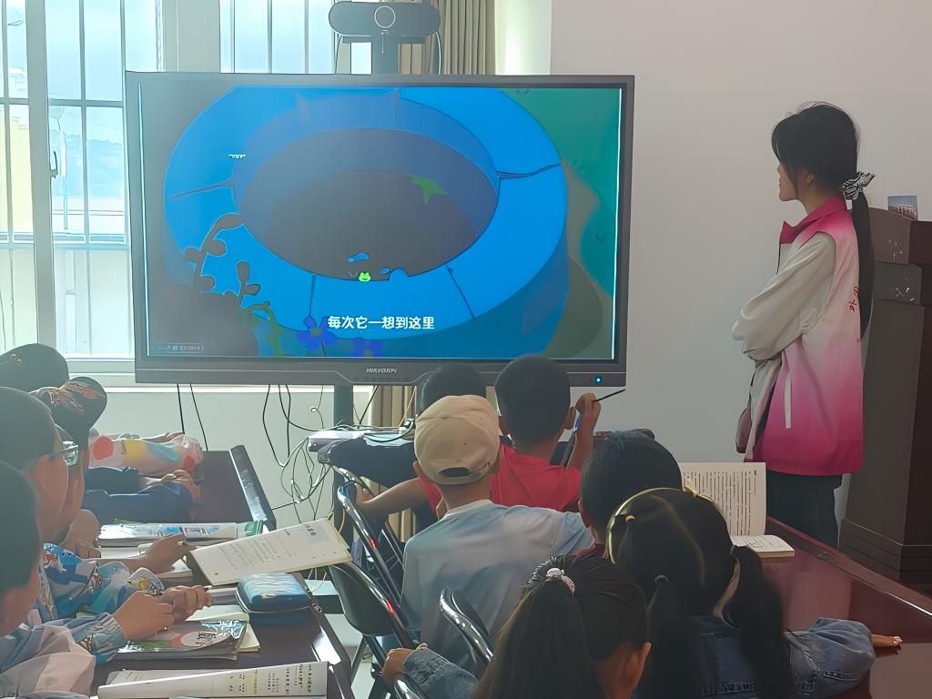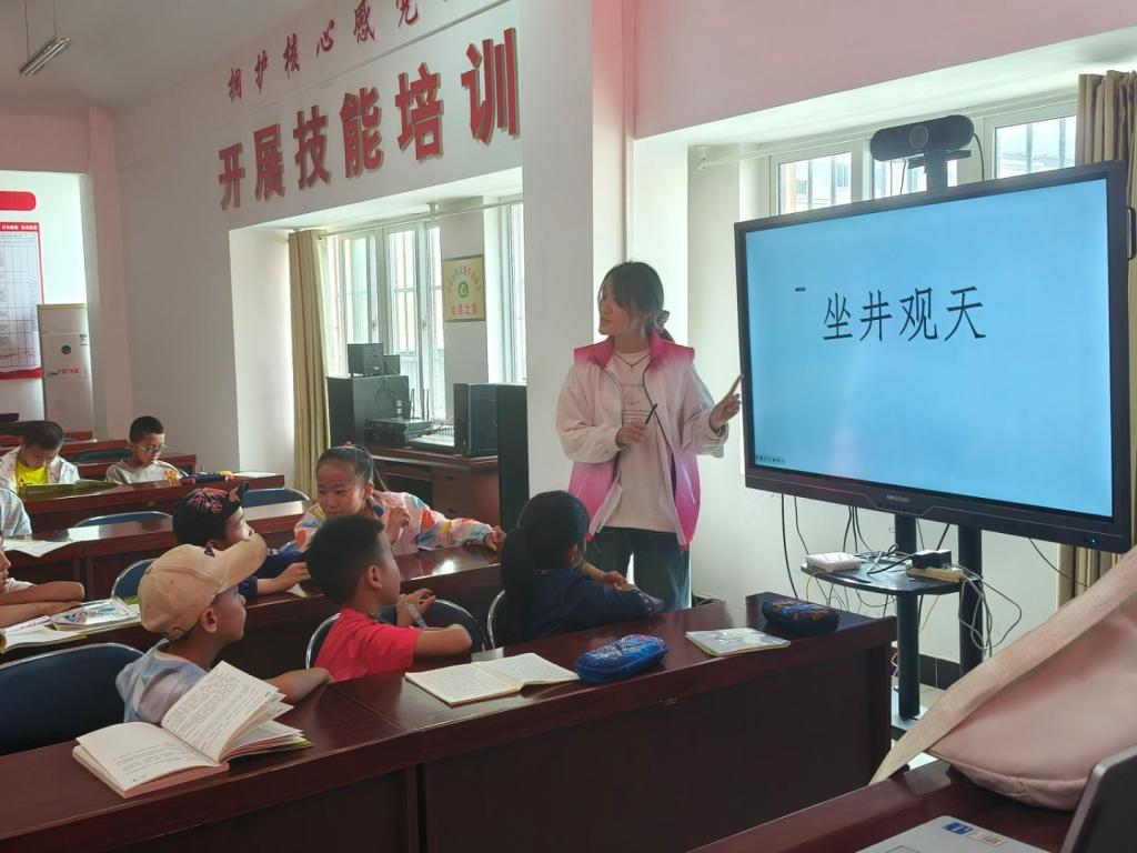 课堂上,团队成员先用生动有趣的视频讲述“坐井观天”的成语故事,随后顺势衔接以“天”字开头的词语接龙游戏。孩子们热情高涨、踊跃竞答,在思维的碰撞中既锻炼了语言组织能力,又真切感受到中华文化的博大精深。