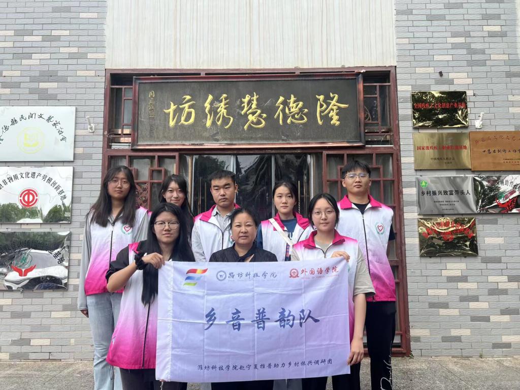 7月25日,潍坊科技学院外国语学院“乡音普韵”推普助力乡村振兴调研团赴宁夏固原隆德县,在非物质文化遗产传承人田慧君的邀请下,走进隆德慧绣坊,开展"推普+非遗"文化传承实践活动。