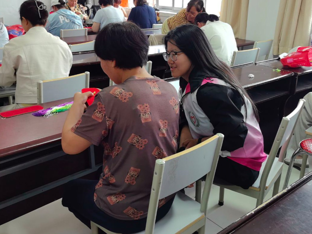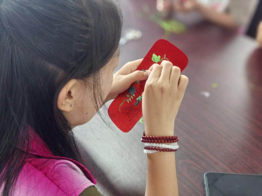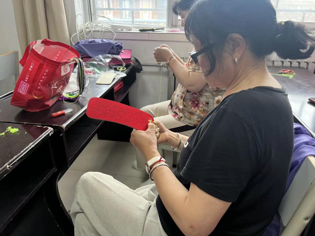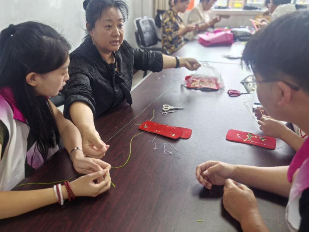 绣坊的资深绣娘们采用“师带徒”的传统传承模式,为青年学子开展一对一的针法教学。她们不仅细致示范“隆德绣”中起针、运线、收针等关键环节的精髓技法,还结合具体作品,从传统图案的象征意义解读到复杂针法的实操要点演示,将积累多年的经验倾囊相授,成员们在理论认知之外,也获得了更为直观的技艺体验。