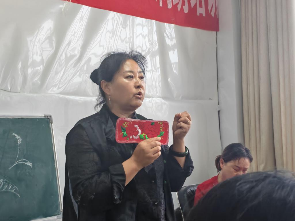 活动期间,非遗传承人田慧君向调研团成员系统阐述了隆德刺绣的发展脉络,田慧君向成员们详细介绍了隆德刺绣的历史渊源、针法特点及纹样寓意,层层递进地为调研团成员展现了隆德刺绣的文化内涵与艺术价值,使成员们对这门传统技艺形成全面认知。