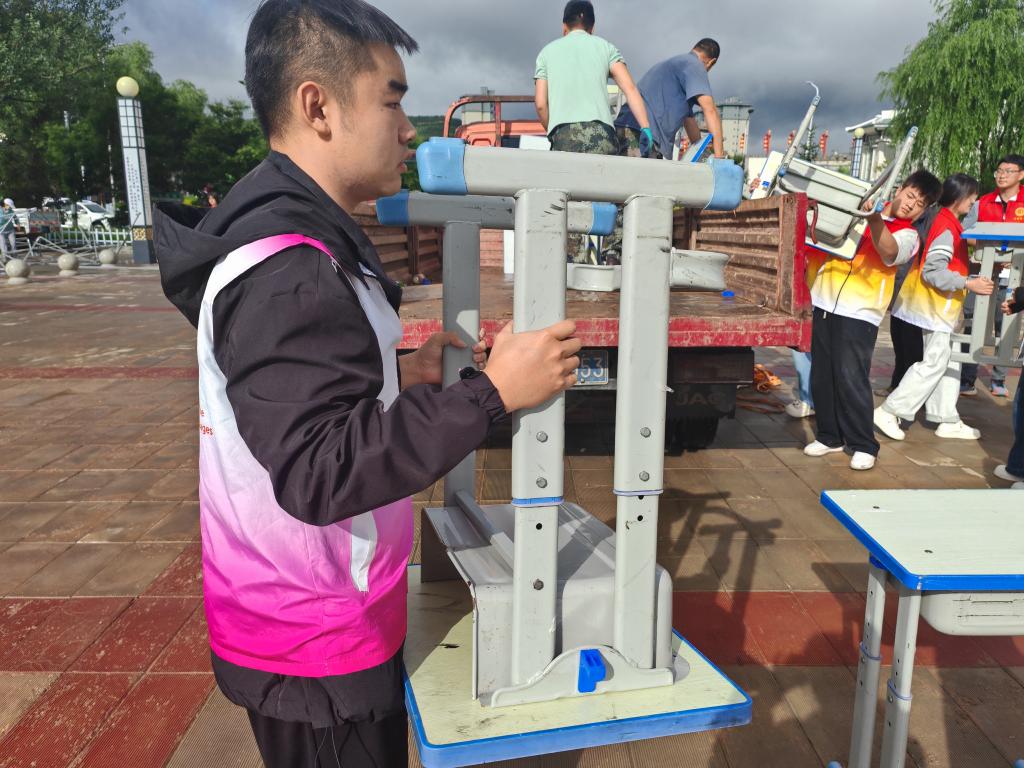调研团抵达后,迅速与当地活动主办方对接,全身心投入到展览的筹备与布置工作中。团队成员严格遵循分工安排,协同配合高效推进各项工作。从前期的桌椅搬运、定位安放,到后期的细节微调,每一个操作环节均体现出团队成员的细致态度与责任担当,最终使原本空旷的场地逐步呈现出庄重有序的展览氛围。