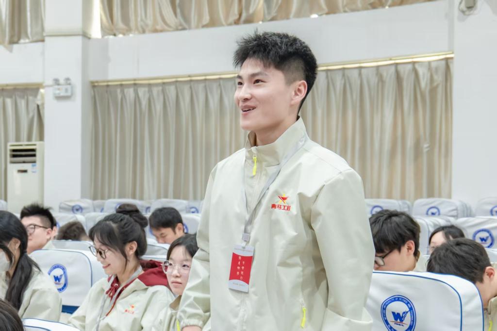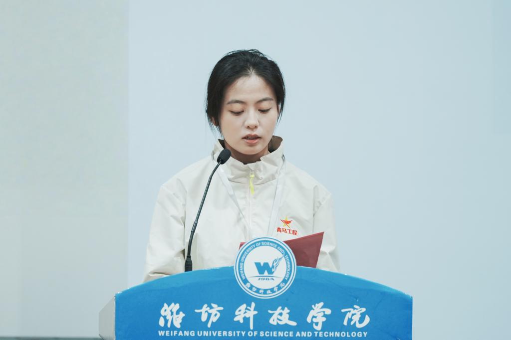 第八期青马班班长李玉晔作表态发言,她代表全体学员郑重承诺:将严格遵守青马班的规章制度,培养优良学风,筑牢思想根基,深耕实践土壤,彰显青春担当。她号召全体学员时刻牢记习近平总书记的嘱托,珍惜学习机会,以“请党放心”的决心和“强国有我”的行动,在乡村振兴、科技创新、社会治理等战场贡献青春智慧,以实际行动书写为中国式现代化挺膺担当的潍科青年新篇章!